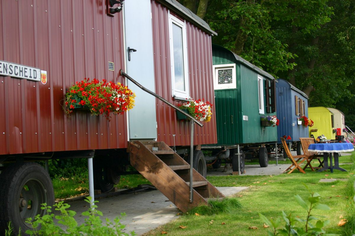 Neben ordinären Campingplätzen kann man hier auch in sogenannten Schlaffässern nächtigen. Die vier Meter langen Kiefernholzfässer bieten nicht nur Platz für ein Doppelbett, eine zur Schlaffläche umbaubare Bank, Tisch, Stauraum und Heizung, sondern auch einen herrlichen Ausblick über das buckelige bergische Land. Für Peter-Lustig-Freunde stehen außerdem auch Bauwagen als Übernachtungsmöglichkeit zur Verfügung.