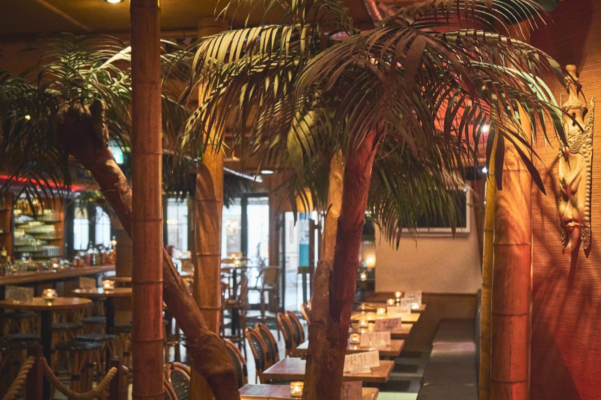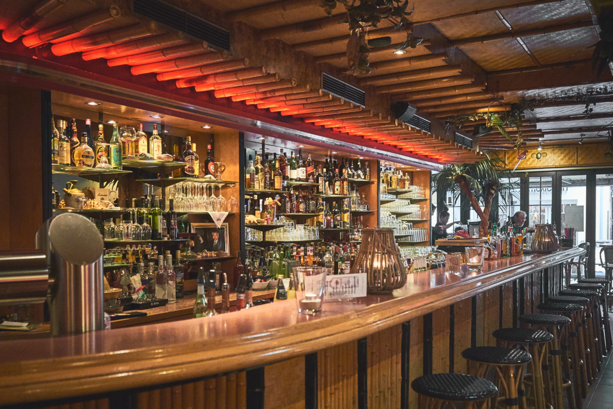 Trubeliger geht es da schon in dieser Cocktailbar zu. Zwischen Deko-Palmen und Bambus-Interieur kommt paradiesisches Urlaubs-Feeling auf. Wer also auf der Suche nach tropisch-fruchtiger Begleitung des Abends ist, der wird hier fündig. Das muss allerdings nicht für mindere Cocktail-Quali stehen. Schirmchen sucht ihr im Glas vergebens, stattdessen lässt sich unter einem sitzen und am Strohhalm schlürfen. Übrigens gibt’s jeden Tag eine Happy Hour und alle Drinks können auch to go bestellt werden.