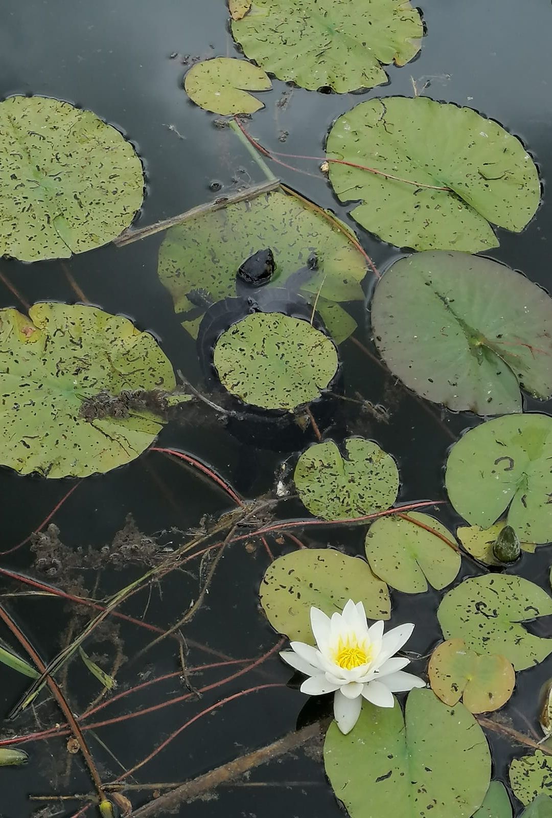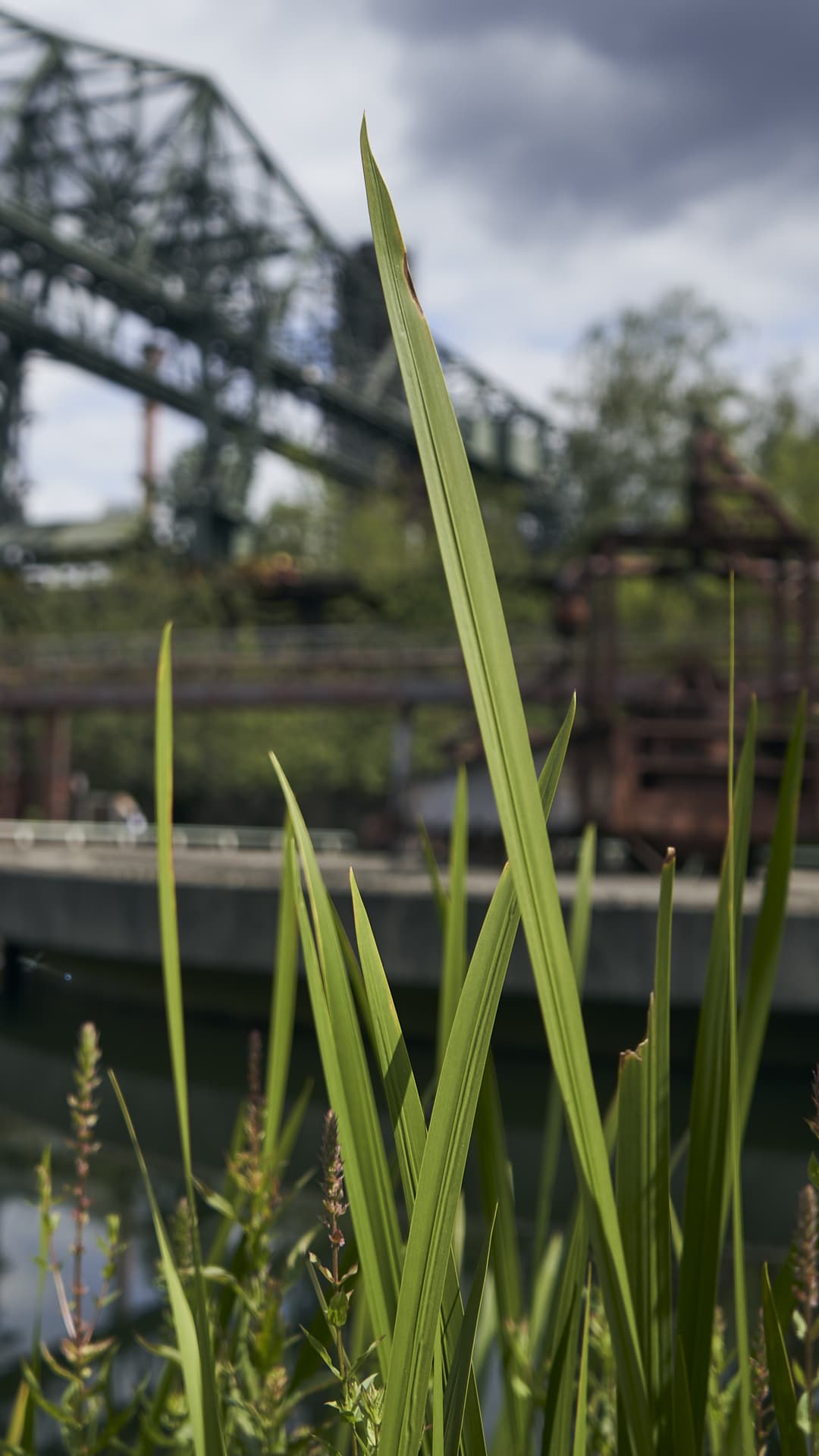 Wir bewegen uns bei Sonnenschein weiter zum Klarwasserkanal, wo an mehreren Stellen Treppen hinunter zu kleinen Plattformen ans Wasser führen. Begebt ihr euch hierhin, könnt ihr hautnah über Fauna staunen. Ein Highlight des Tages, was unsere tierischen Begegnungen angeht, erhaschen wir ganz unerwartet: Auf einem inselähnlichen Seerosenblatt ruht gemütlich das Köpfchen einer Wasserschildkröte. Mit den wundervollen Eindrücken der Liaison von Industriekultur und Natur machen wir uns in nord-östlichem Bogen auf den Rückweg zum Haupteingang.
