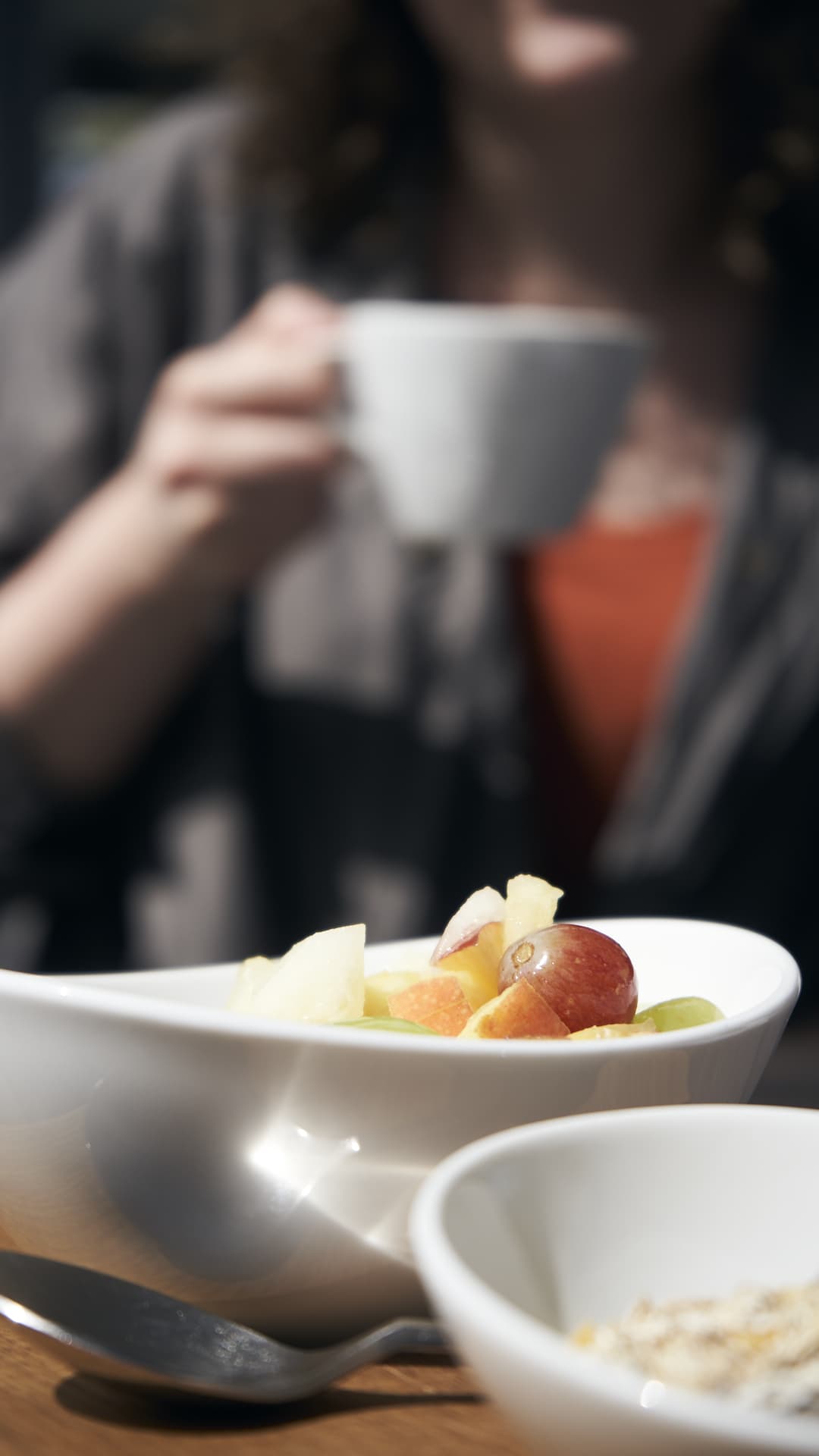 Am Morgen machen wir uns – eines Urlaubs angemessen – als erstes auf an den Strand. Der feinkörnige Außenbereich des Ziegenpeters am Rheinpark ist ein pittoreskes Plätzchen für einen gelungenen Start in den Tag. Hier schlürft man genüsslich seinen Kaffee, während der Blick über den Rhein samt reger Schifffahrt vorbei an der Brücke der Solidarität schweift und man gleichzeitig die Zehen in den Sand stecken kann. Zum Wachmacher werden etwa Käseplatten, namensgetreu unter anderem mit Ziegenkäse, kredenzt. Unsere Wahl fällt jedoch auf das Frühstück „Zum Löffeln“, einem selbstgemachten Vanillejoghurt mit frischem Obst und Müsli.