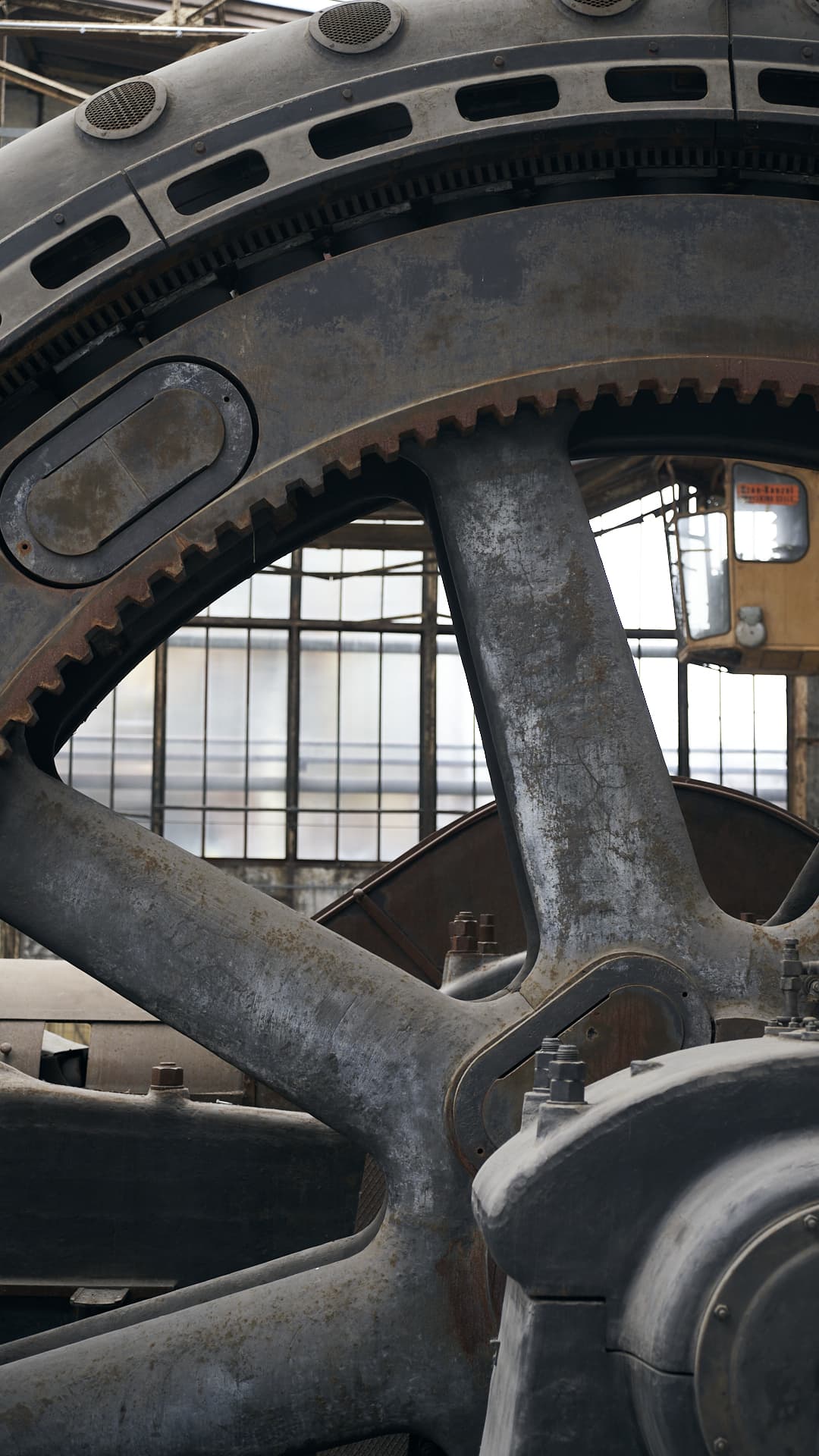 Der erste Stopp ist die Gebläsehalle. Durch die Dachfenster fällt das Licht auf die stillstehenden Maschinen, die als Zeugen vergangener Werke den Raum füllen und ein Gefühl davon vermitteln, welche Kräfte hier walteten. Früher wurde hier die heiße Luft erzeugt, die in den Hochöfen der Anlage für den Verhüttungsprozess benötigt wurde. Exemplarisch steht am Ende der Halle ein gigantisches Gebläse. Außerdem bestaune ich in der Halle ein Walzwerk und einen Schmiedehammer, vor allem aber den extrem stilvollen Kachelboden, der in seiner schwarz-weiß-quadratischen Pracht noch aus dem Originalbetrieb stammt.