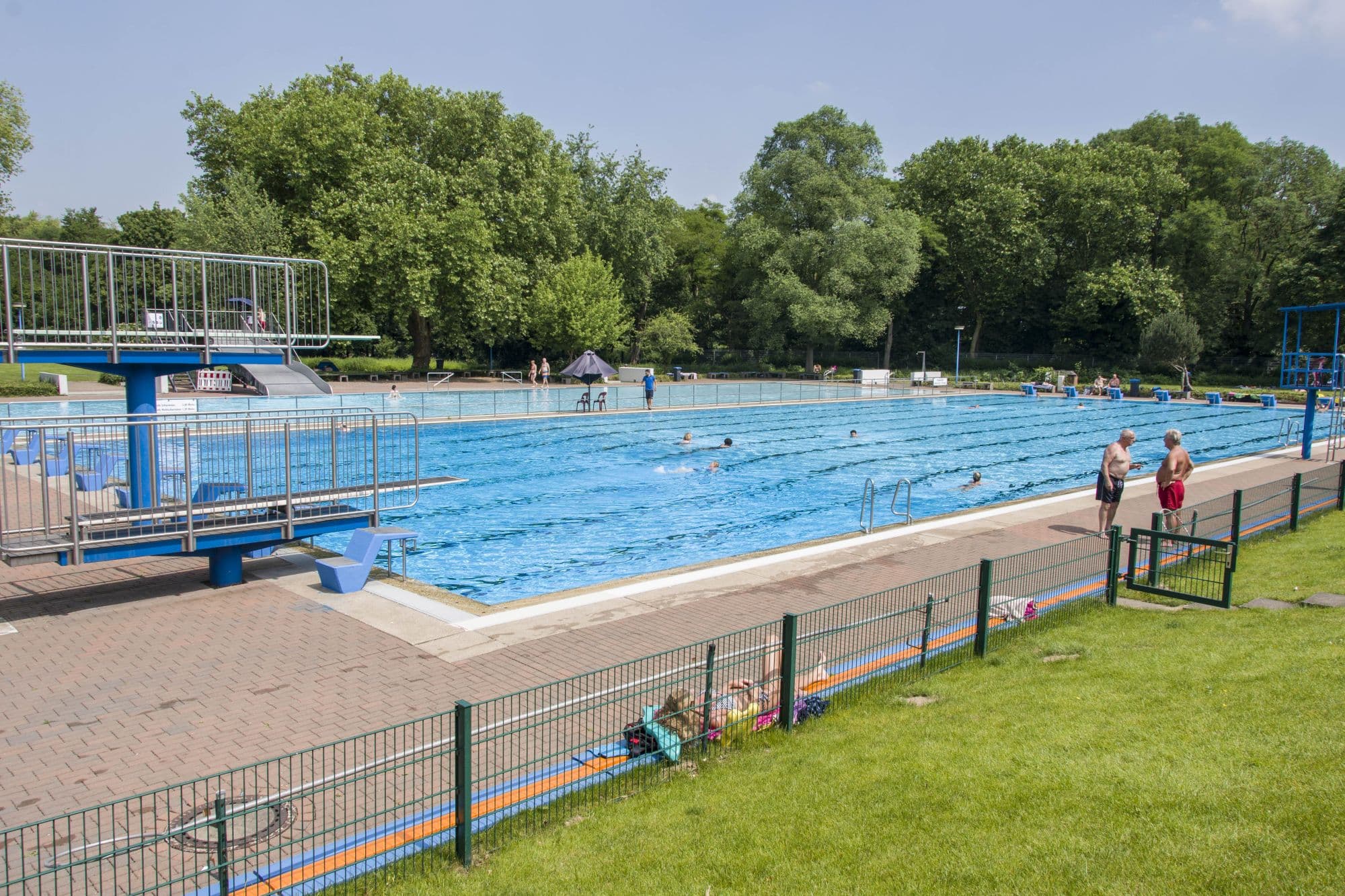 Badegäste können hier draußen schwimmen. In der Freibadsaison ist jede Menge Platz für Schwimmer und Nichtschwimmer: Beide Außenbecken sind jeweils 50 Meter lang, das Schwimmerbecken fast vier Meter tief. Für die Kleinsten gibt es dann immer noch das Planschbassin und die Wasserrutschen. Sauna und Gastro sind natürlich ebenfalls am Start.