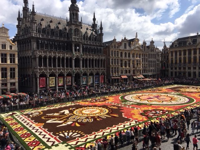 Frisch gestärkt geht’s weiter in Richtung Grote Markt und zu Brüssels Hauptattraktion an diesem Wochenende. Auf einer Fläche von 77 mal 24 Metern fügen sich hunderttausende Blumen zu einem Kunstwerk zusammen – 2018 inspiriert vom zentralmexikanischen Bundesstaat Guanajuato. Bereits seit 1971 zieht der Blumenteppich jedes Jahr zehntausende Besucher in die Stadt – besonders schön anzusehen übrigens vom Balkon des Rathauses oder des Museum van de Stad Brussel aus. Aber auch an anderen Tagen ist der zum UNESCO-Weltkulturerbe erklärte Grote Markt – eingerahmt von Gebäuden aus verschiedenen Epochen – ein Magnet für Touristen.