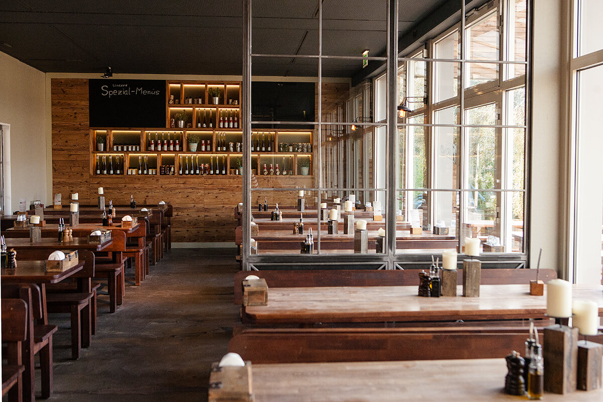Egal ob euer Lieblingsplatz am Kamin oder draußen auf der Terrasse ist, bayrische Gemütlichkeit ist auf dieser Hütte vorprogrammiert. Dafür sorgen Holz, wo man auch hinsieht, Blumen, die von der Balustrade hängen und warm inszeniertes Licht. In dieser Atmosphäre voller Urlaubsflair geht es kulinarisch natürlich zünftig zu. Bei Bavaria Alm erwartet euch samstags ein Frühstücksbuffet, sonntags gibt’s Brunch. Auf den Tisch kommt: allerlei vom Laugengebäck, Brot und Brötchen, Weißwürste, Früchte, Desserts, Müsli, Eier, Salate, Fisch, feine Fruchtaufstriche und einiges mehr. An Guadn!