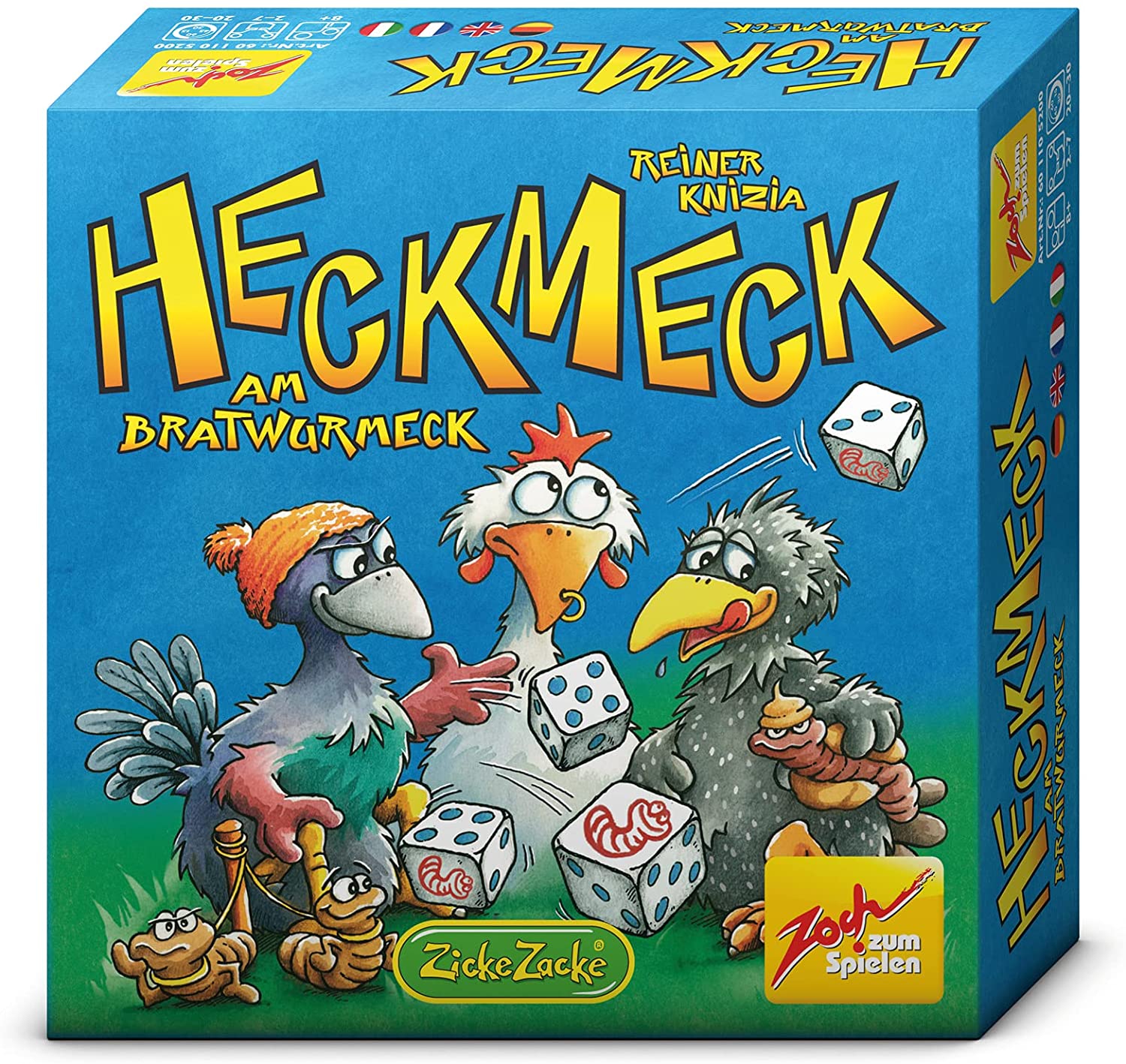 Bei “Heckmeck am Bratwurmeck” schlüpft ihr in die Rollen von hungrigen Hühnern. Dafür gilt es, mit Würfeln Werte entsprechend den ausliegenden Bratwurmportionen zu erreichen und sie sich vor den anderen Federviechern zu schnappen. Ein kurz-knackiger Spielspaß mit Ärger-Potential.