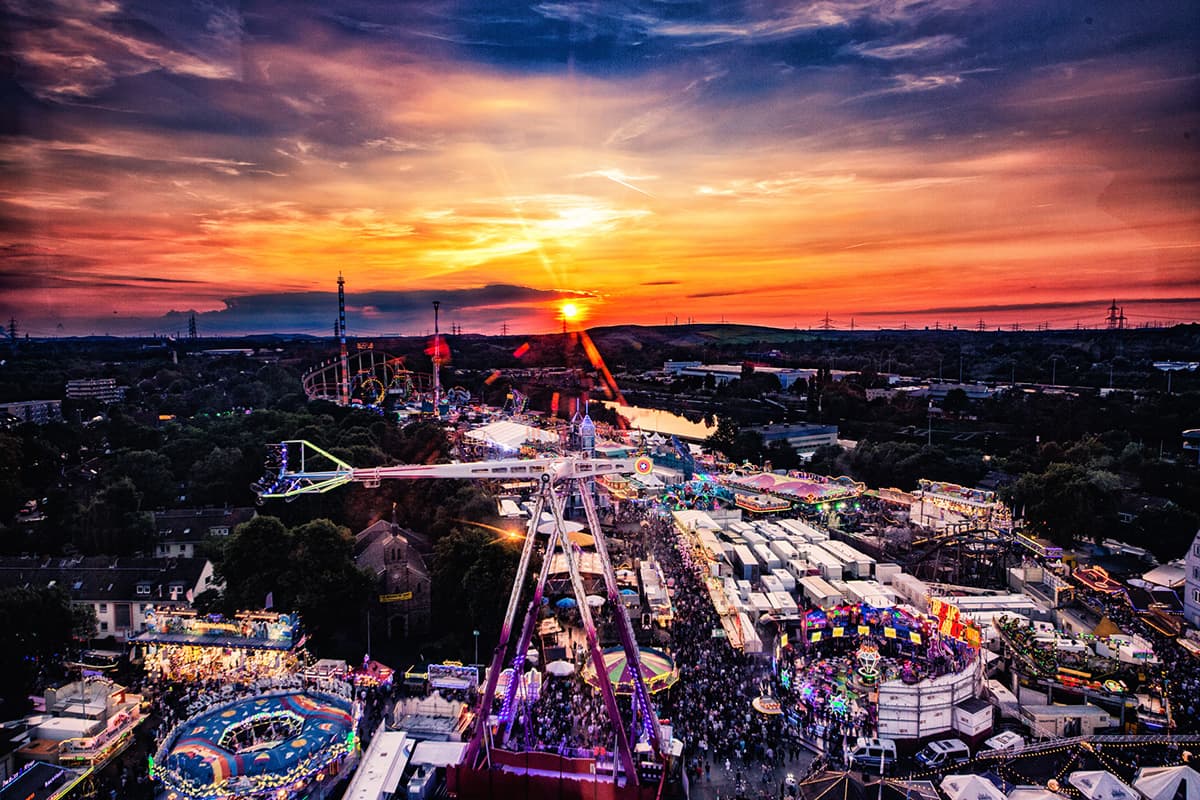 Auf einer Strecke von 2,5 km ist die Sterkrader Fronleichnamskirmes die größte im Oberhausener Stadtbezirk und lockt tausende Kirmes-Fans in die Innenstadt. Der Auftakt des Jahrmarktes ist der Fassanstich durch den Oberbürgermeister. Lass dir Live-Musik und leckeres Essen nicht entgehen und fahre mit Achterbahnen bis dir schlecht wird. Sechs Tage Adrenalin pur – am letzten Abend geht die Kirmes mit einem großen und vor allem bunten Höhenfeuerwerk zu Ende. Den besten Blick darauf hast du, wenn du montagabends auf die hohen Fahrgeschäfte gehst.