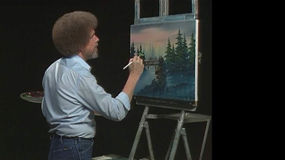 „Happy little accidents“ – für viele ist Bob Ross nicht nur irgendein Typ, der im Fernsehen Landschaften gemalt hat. Bob Ross ist eine Philosophie. Habe Mitgefühl, denke positiv und empfinde Freude an dem, was du tust. Wer gemeinsam mit Bob Ross malt, fühlt sich einfach gut. Und deswegen ist auch das eine schöne Methode, die leere Leinwand zu füllen. Einfach “The Joy of Painting” von Bob Ross anschmeißen und seiner beruhigenden Stimme folgen. Was am Ende dabei herauskommt, ist nicht so wichtig, richtig oder falsch hat in einer gemeinsamen Bob-Ross-Session nichts zu suchen. Bob Ross ist Well-Being noch bevor es Well-Being gab. Aber wie dem auch sei. Für eine Runde Malen mit Bob Ross braucht es nur eine Leinwand, Ölfarben, eine Palette zum Mischen der Farben, Pinsel und einen Malspachtel.