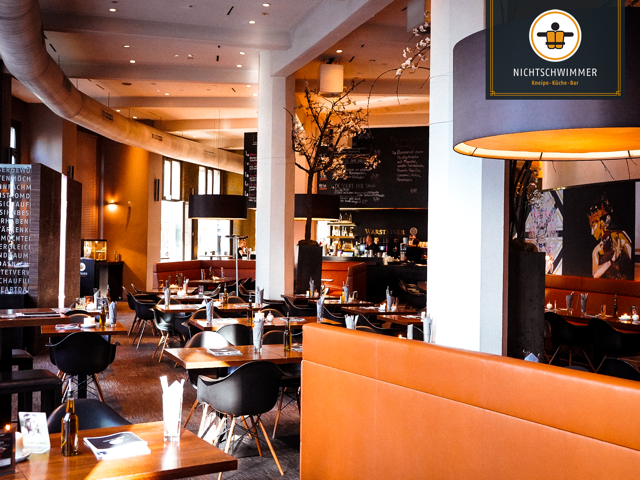 Streckt die Arme und Beine aus und lasst euch im Nichtschwimmer-Pool treiben. Entspannt euch und genießt die Zeit. Lasst euch von der kreativen Küche nach allen Regeln der Kunst verwöhnen. Im Nichtschwimmer ist die Palette groß: experimentelle bis bodenständige Küche, nach Möglichkeiten mit Zutaten aus der Region. Pizza (lang und nicht rund), frische Pasta, Salate, Veganes und Geniales steht auf der Karte. Aber bevor es ans Eingemachte geht, erstmal ein üppiges Frühstück. Samstags, sonntags und feiertags wird im Nichtschwimmer ein königliches Frühstück angeboten. Ohne Kompromisse, schlemmen ohne Ende. Prosecco ist inklusive – wenn das kein Argument ist.