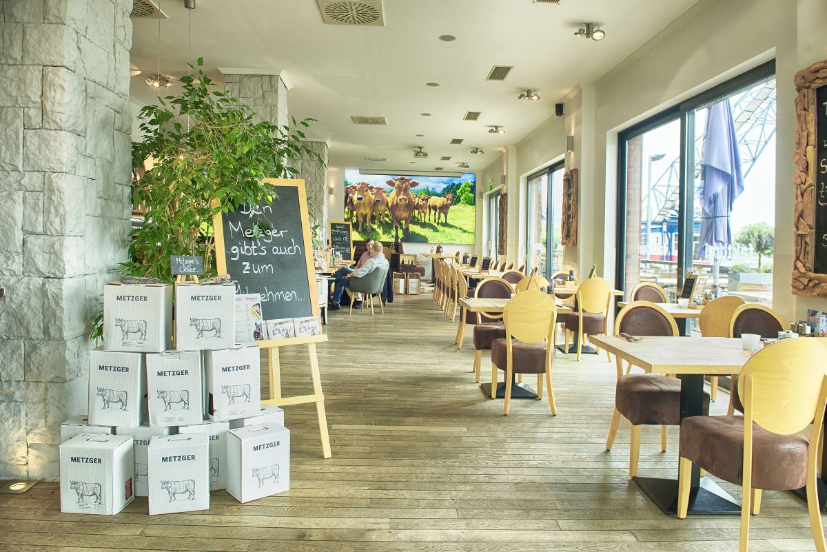 “Sexy Food” – für dieses Attribut wurde dem dienstältesten Restaurant am hippen Innenhafen (amongst others) zuletzt geehrt. Wie man nun Steak, Burger und Co. in verschiedene Sexyness-Skalen einordnet und wie notwendig das ist, ist die eine Sache. Die andere, viel wichtigere: Das Essen schmeckt. Und wie! Auf artgerechte Aufzucht und Haltung der Tiere, die später verarbeitet werden, legt Inhaber und Chefkoch Stefan Camman besonderen Wert. Genau wie darauf, dass auch die Vegetarier in seiner kulinarischen Obhut nicht zu kurz kommen. Also steht neben Lamm-Burger mit Rosmarin, Thymian und Pesto-Mayonnaise oder auf den Punkt gebratenen Steaks auch der Veggie Deluxe auf der Karte, ein Gemüseburger mit dreierlei Käsesorten und Zwiebel-Apfelchutney. Yummy.