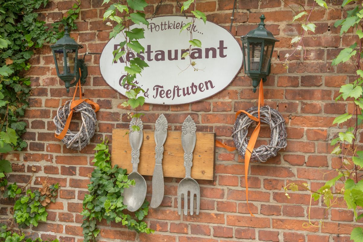 Klaus Poggenpol, Inhaber und Küchenchef im Pottkieker, will den Ruf der deutschen Küche wieder aufpolieren. Als verstaubt und unmodern galt diese unter Umständen, und das soll hier widerlegt werden, mit ausgefallenen Interpretationen deutscher Traditionsgerichte. So wird die Kartoffelrahmsuppe mit Mettwursttaler hier besonders pfiffig gewürzt, im Pumpernickelmantel werden hier Schweinemedallions gegart und mit Spitzkohl serviert, fleischlos kommt das Edelpilzgratin mit (natürlich) hausgemachten Spätzle daher. Im angeschlossenen Café gibt es feine Tees, guten Kaffee und wunderbare Torten und Gebäcke – für die süße Verführung nach dem wunderbaren Essen. Mission deutsche Küche rehabilitieren: accomplished!