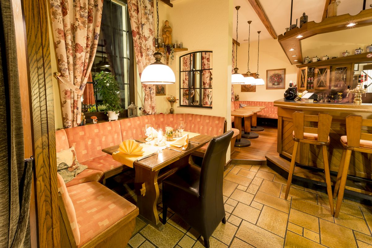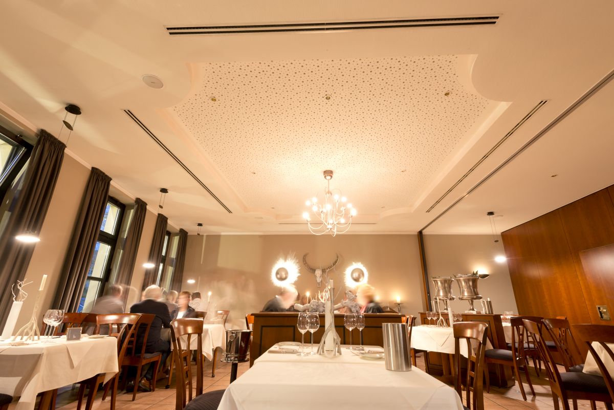 Gut gehen lassen kann man es sich in diesen alten Gemäuern: Unter der Leitung von Küchenchef Frank Groll zaubert sein Team Gourmetgerichte, die simpel klingen, es aber in sich haben: Reibeplätzchen mit Lachs, gebratene Blutwurst, Kalbsragout. Aber auch Raffinierteres kommt auf den Teller, Jakobsmuscheln mit Morcheln, flambierter Tintenfisch oder Rehrücken mit Rhababer. Ausgezeichnet hier ist das Wiener Schnitzel, selbstredend aus Kalb. Auch die Desserts lassen keine Wünsche offen. Satt und zufrieden kann man dann im angeschlossenen Hotel sein Lager beziehen.
