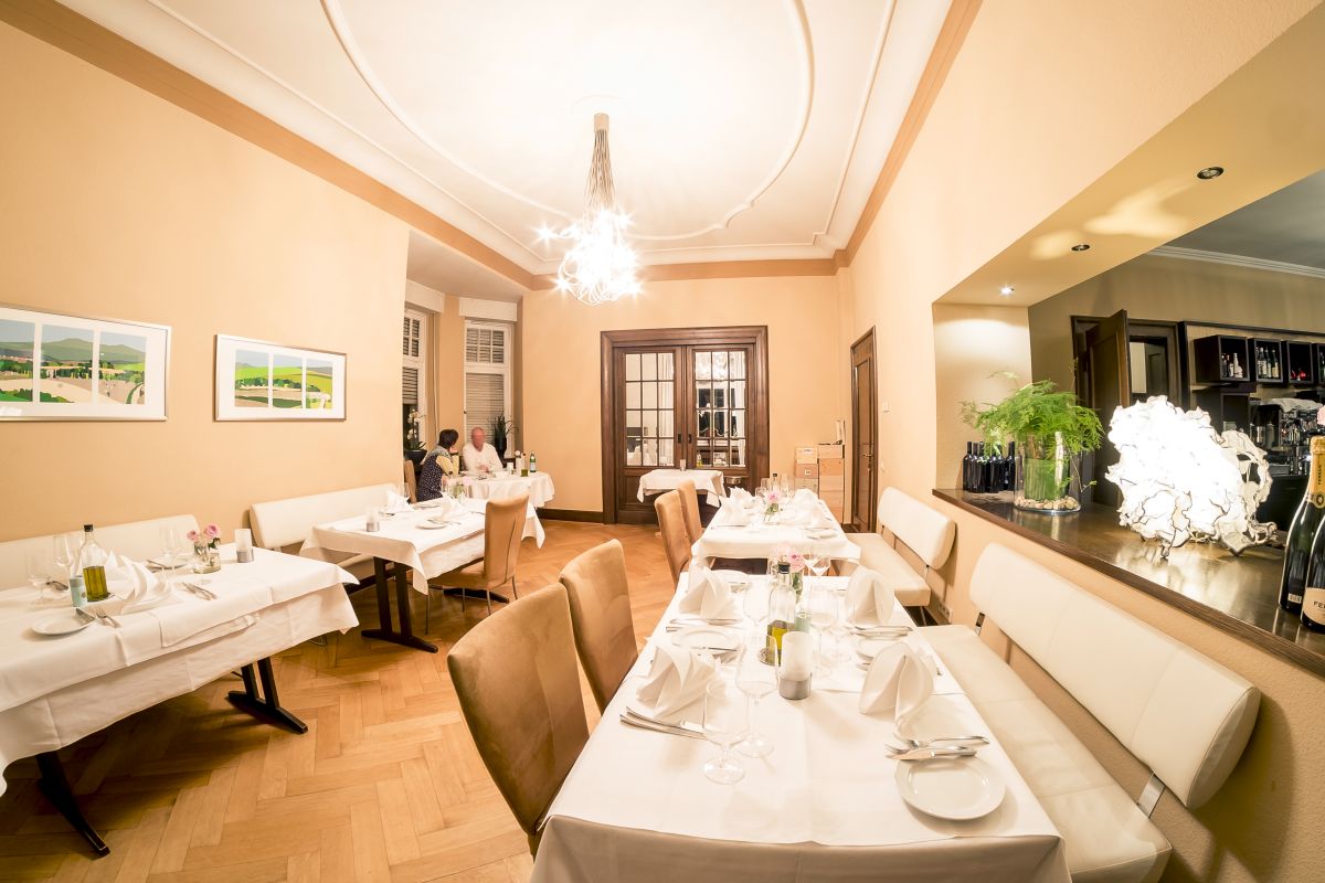 Christian Feldmann serviert in seinem Restaurant klassische Gerichte, modern interpretiert. Ochsenbäckchen mit Spitzkohl, Kabeljau mit Senfhaube oder Spargelrisotto mit Riesengarnelen etwa werden hier kredenzt. Auch Burger gibt es, aus Kalbfleisch, garniert mit Honig-Zwiebeln und Schmorpaprika. Die Atmosphäre ist gediegen, aber entspannt, der Service aufmerksam und freundlich. Wer zu satt zum Heimfahren ist, kann direkt im hauseigenen Hotel ein Zimmer buchen und am nächsten Tag direkt weiter schlemmen.
