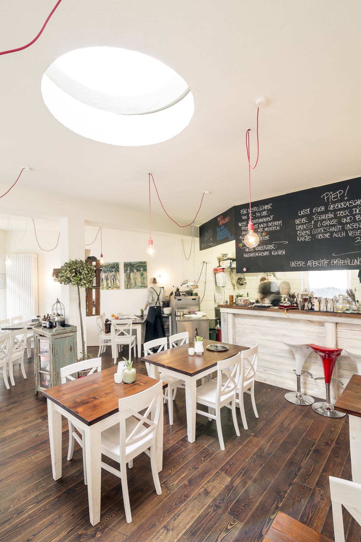 Eine Kreidetafel mit Tagesannoncen, Bistro-Mobiliar vor dem Laden, eine rot gestrichene Fassade – schon von außen versprüht das “Esszimmer” gute Laune und Esprit. Nicolas Unger, Koch in diesem sehr sympathischen Haus, tischt französisch angehauchte Speisen auf. Jakobsmuscheln, Antipasti-Gemüse, gegrillte Avocado oder Tagliarini mit Artischocken verlassen seine Küche und werden vom hervorragenden Servicepersonal kredenzt. Sonntags gibt es ein Drei-Gänge-Menü.