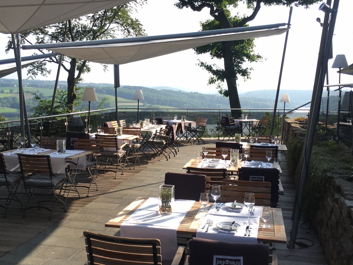 Ebenfalls lauschig im Grünen mit hervorragender Sicht über den Baldeneysee liegt das Jagdhaus Schellenberg in Essen. Der große Außenbereich ist perfekt für schöne, lange und kulinarische Sommernächte zu zweit. Unter einem Sternenmeer könnt ihr so die kreativen Crossover-Ideen des Hauses verspeisen. Übrigens: Ob ihr als Paar wie Yin und Yang fungiert, könnt ihr hier beim Teilen des gleichnamigen Desserts testen.