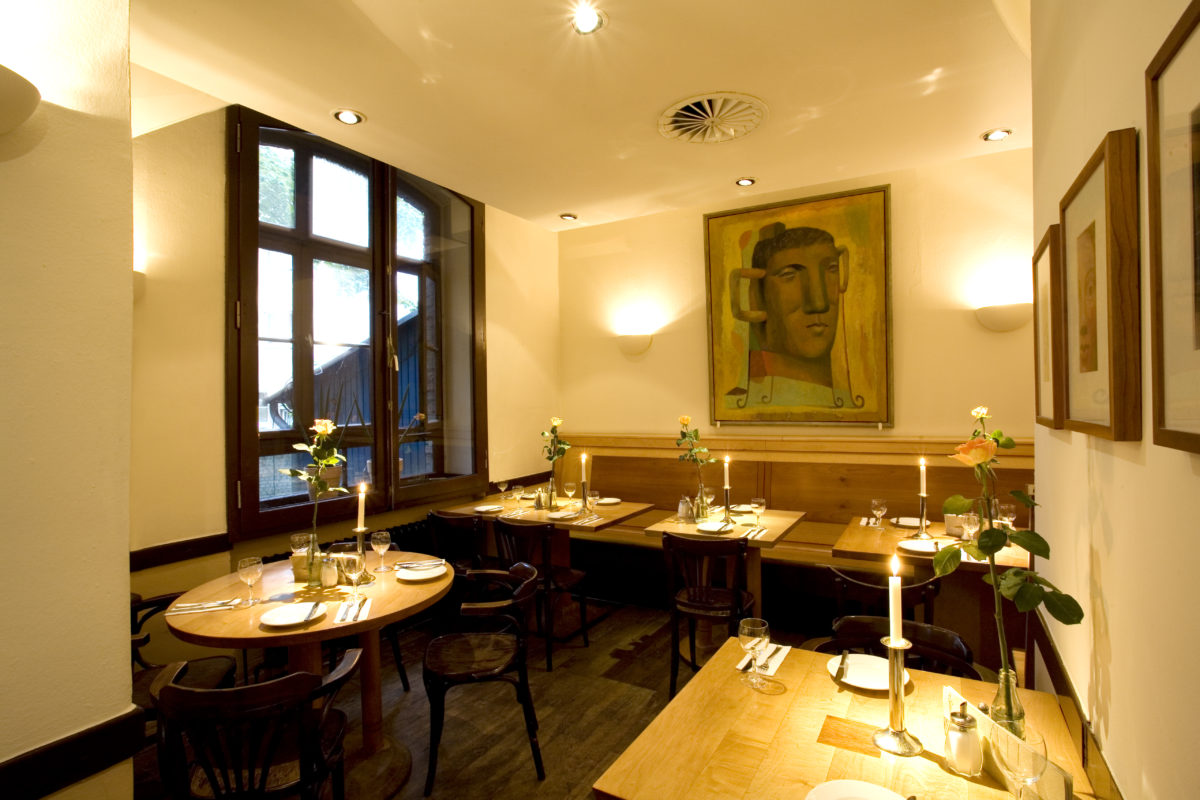 Wo Rosen und Kerzen die Tische zieren, da ist eine Charmeoffensive leicht gemacht. Das warme Ambiente im Muggel ist dank Holz, gut gesetztem Licht und warmen Tönen der perfekte Begleiter für ein romantisches Essen. Das Lokal mit jahrzehntelanger Historie hat wohl schon so einigen verliebten Paaren unvergessliche Momente beschert. Ihren Beitrag dazu leisten sicherlich auch die Speisen der Abendkarte: Gestartet werden könnte mit Muggels Fischsuppe, bevor es über Linguine mit frischen Trüffeln zum Käseteller samt Feigensenf geht.