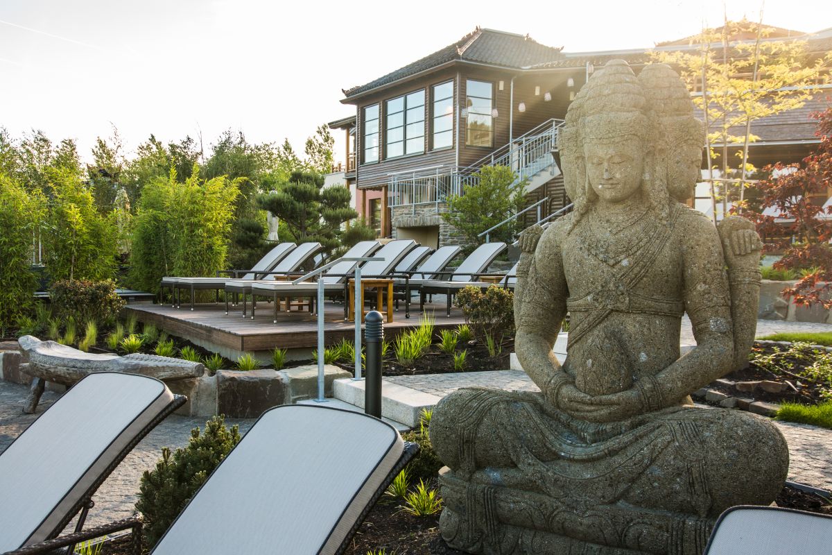 Das Yin und Yang der Saunawelt ist, selbstverständlich, das Heiß und Kalt. Dieser Weisheit verschrieben hat sich die Asia Therme mit ihren zehn Saunaoptionen, von der Himalayasalzsauna über das Dampfbad bis zur Pagodensauna. Verwöhnen lassen kann man sich auch mit Infrarot, Farblicht, Salzpeeling oder Honig als Hautcreme. Whirlpools, Gartenanlage und Becken mit Außenbereich laden zum Entspannen ein – herrlich.