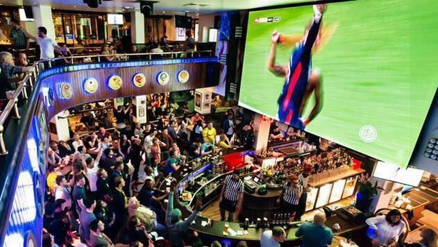 Eine American Sportsbar par excellence findet ihr am Rudolfplatz in Köln. In diesen Hallen schaut ihr Sportevents auf einer 15 Quadratmeter großen LED-Wand und müsst gleichzeitig aufpassen, nicht von den anderen mehr als 40 Monitoren und zwei Leinwänden abgelenkt zu werden. Tricky! 365 Tage im Jahr ist geöffnet, um euch bei Spielen der Bundesliga und NBA, beim Super Bowl oder bei Formel-1-Rennen und vielem mehr mitfiebern zu lassen. Landestypisch füllt ihr die eigenen Energiereserven mit Burgern, Fries und Co. auf. Montags gibt’s Spare Ribs und Chicken Wings in All-You-Can-Eat-Manier. Außerdem lockt zweimal am Tag eine Cocktail Happy Hour.