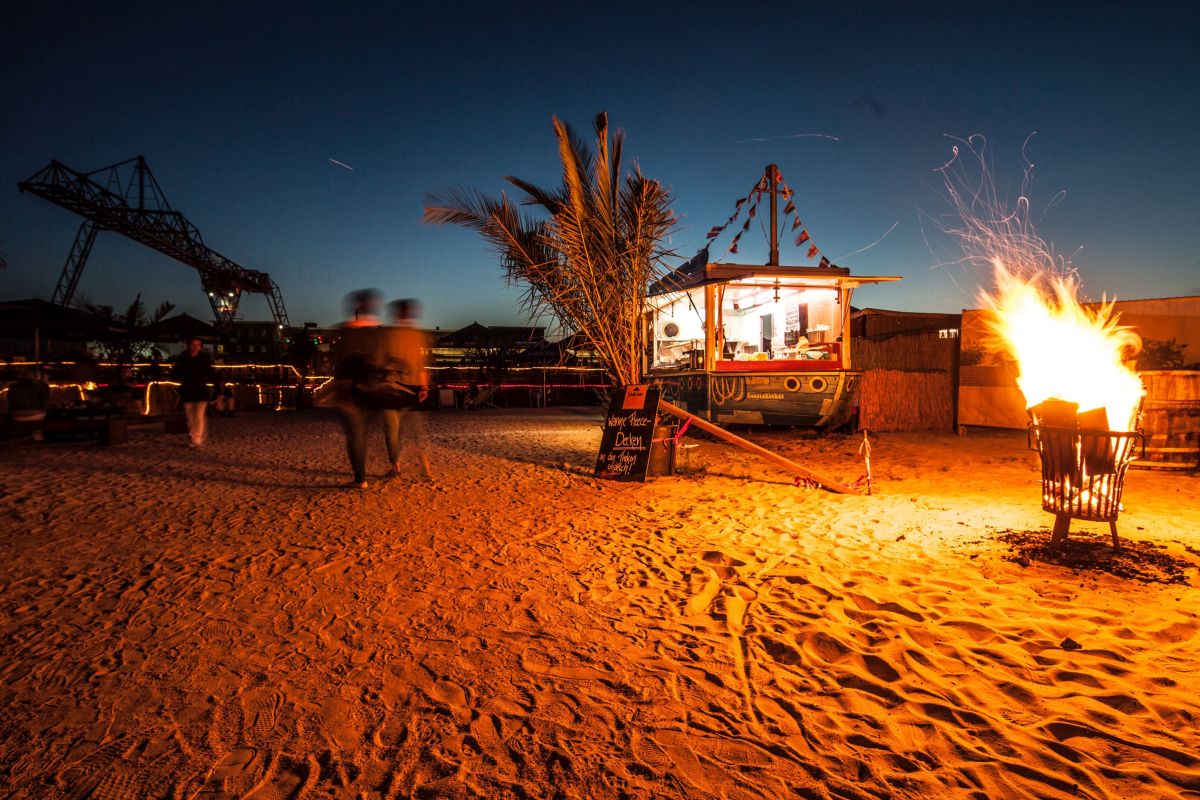 In direkter Anbindung an das traditionsreiche Stahlwerk liegt dieser Eventstrand im Stil einer Piratenbucht. Exotische Pflanzen, Cabanas, Strandliegen, Palmen, Grill und Cocktails sorgen für karibisches Flair. Auch sommerliche Events finden wieder statt.