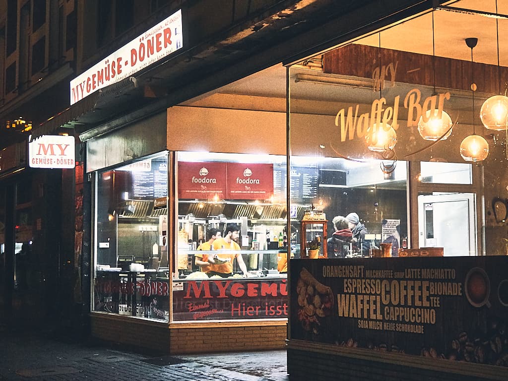 Die Netzgemeinde ist sich einig: der beste und leckerste Veggie-Döner in D’town. Ins Brot kommen frittiertes Gemüse und Kartoffeln, dazu Salat und eine von vier hausgemachten Saucen (eine vegan), das Ganze abgeschmeckt mit einem Spritzer Zitrone – Hammer! Supernette, herzliche Betreiber + hoher Entertainmentfaktor.