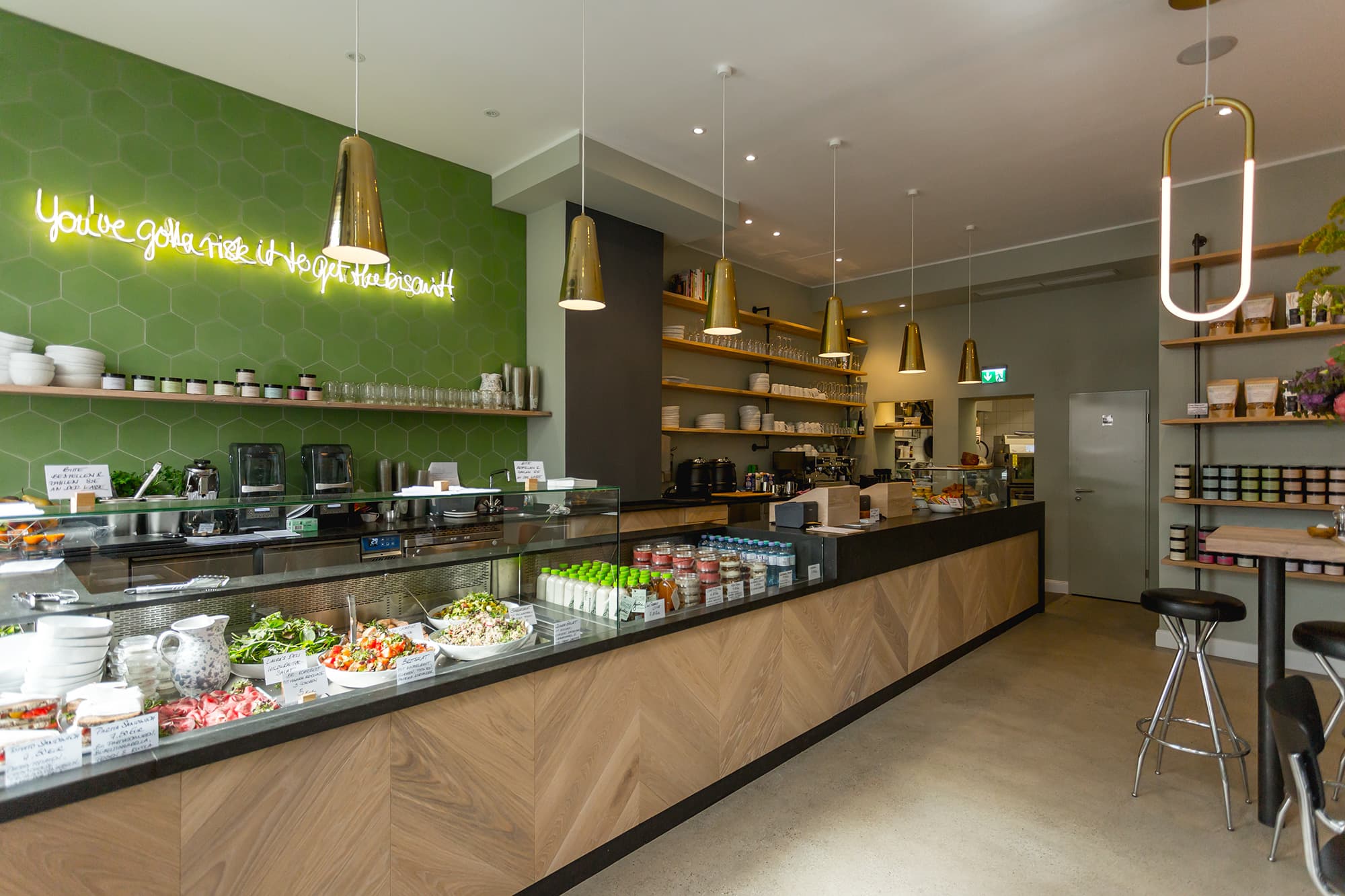 “Treat your body like a temple”, so lautet das Motto der Greentress-Inhaber Alexandra Greentree (aus Sydney) und Henrik van Bonn (aus Düsseldorf). Und dem machen sie alle Ehre: Inspiriert durch den australischen Healthy-Lifestyle servieren die beiden vorrangig vegane und vegetarische Küche sowie kaltgepresste Säfte, Smoothie Bowls und außergewöhnliche Salatkreationen – hippes Interior inklusive.