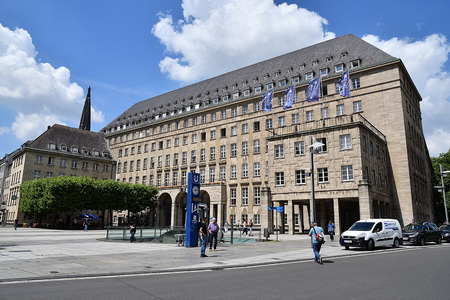Rathaus, Willy-Brandt-Platz, Bochum; Christuskirche, Platz des europäischen Versprechens, Bochum