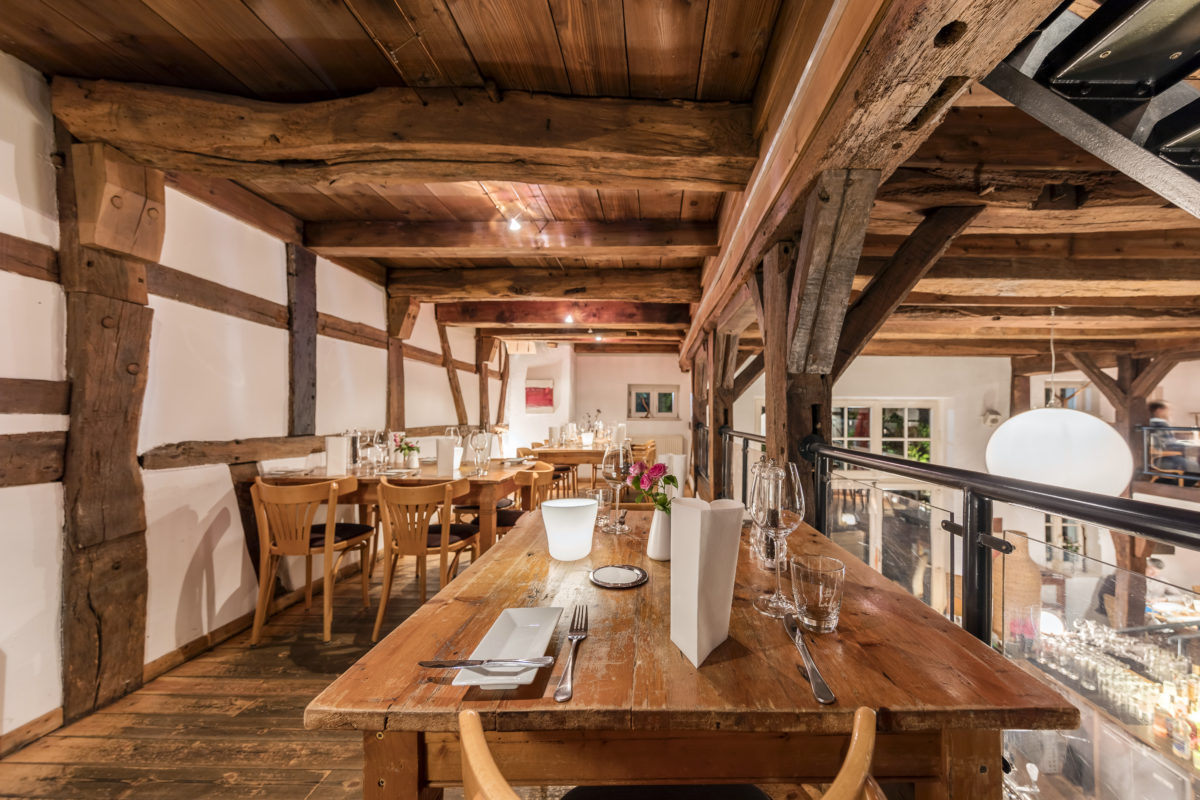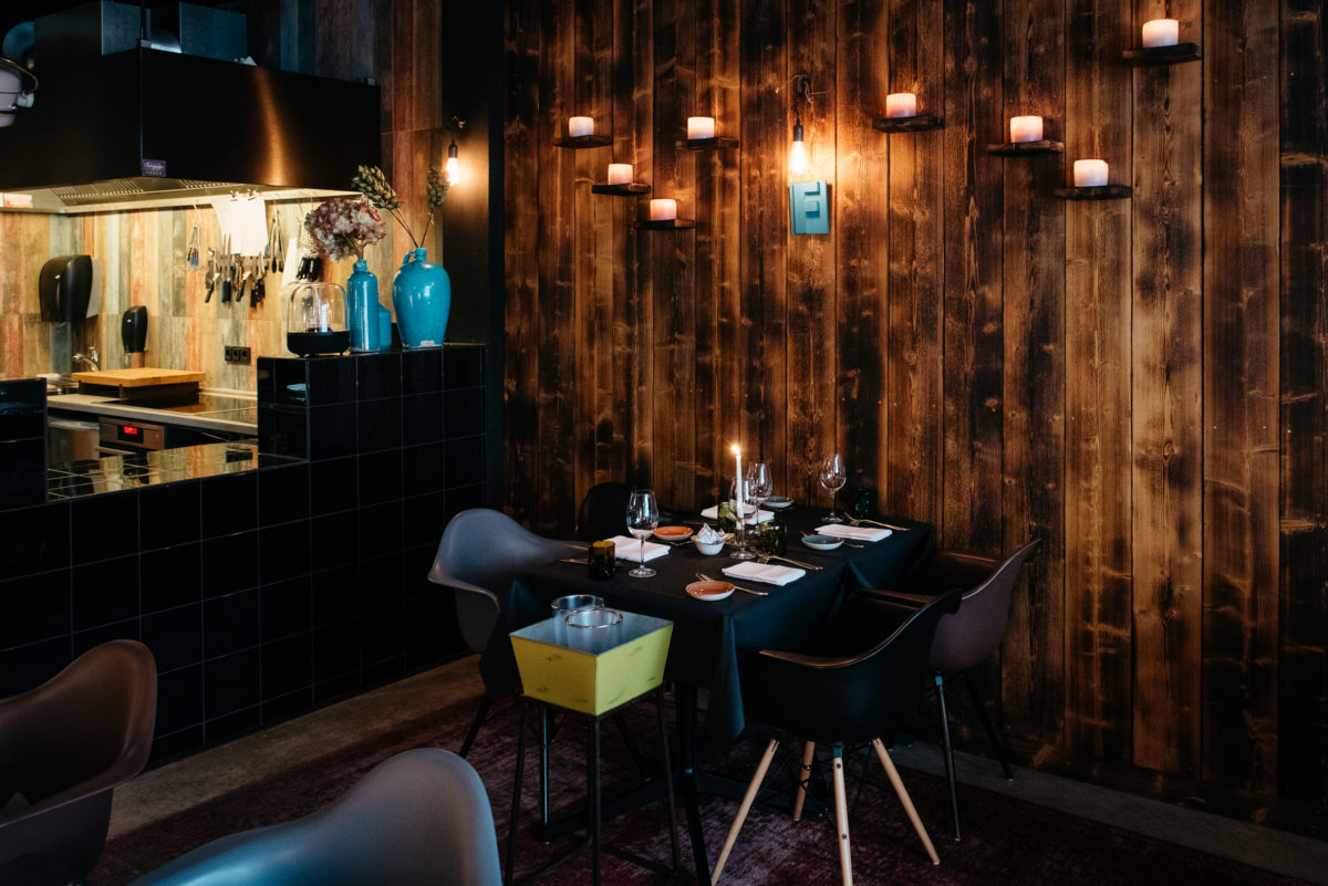 Handverlesenes Mobiliar und eine zukunftsweisende Gourmet-Idee: Das Restaurant, in dem knapp 20 Gäste in intimer und gemütlicher Atmosphäre dinieren können, ist ein wahr gewordener Konzept-Traum. Zwei regelmäßig wechselnde Fünf-Gänge-Menüs werden aus der offenen Küche serviert, nicht mehr, nicht weniger. Zur Auswahl steht eines mit Fleisch und/ oder Fisch, das andere ist rein vegetarisch. Dazu eine exzellente Weinauswahl, die vom hauseigenen Sommelier durchaus unterhaltsam angeboten wird. Wunderbar!